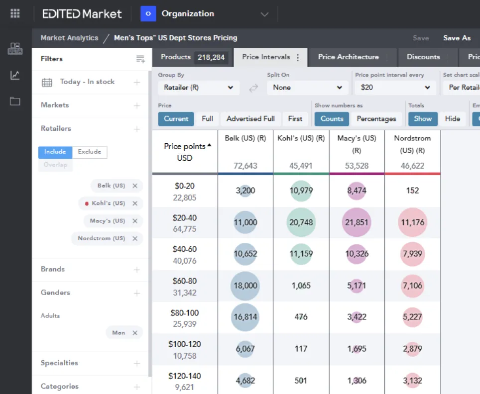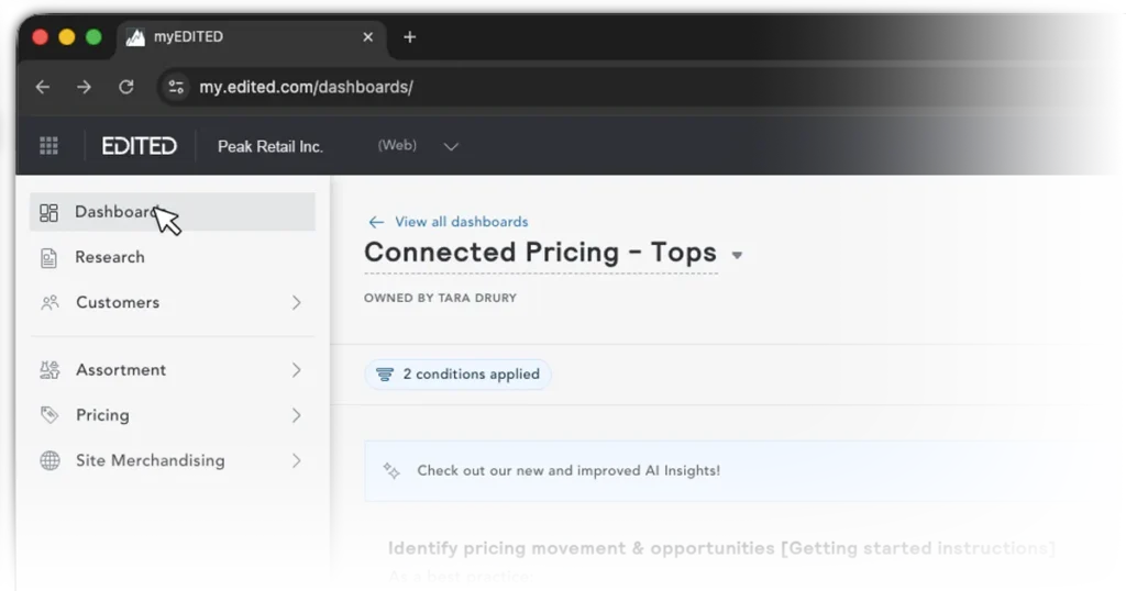 With real-time visibility into your performance and the broader pricing landscape, EDITED helps you get the first price right, pivot when needed, and move inventory with strategic, data-backed promotions, not blanket markdowns. Our advanced AI automatically identifies products to consider for a price increase or decrease, and allows you to automate price changes.