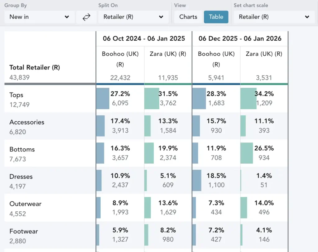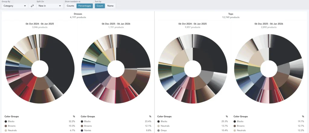 Track emerging and trending styles, colors and patterns against the broader market.